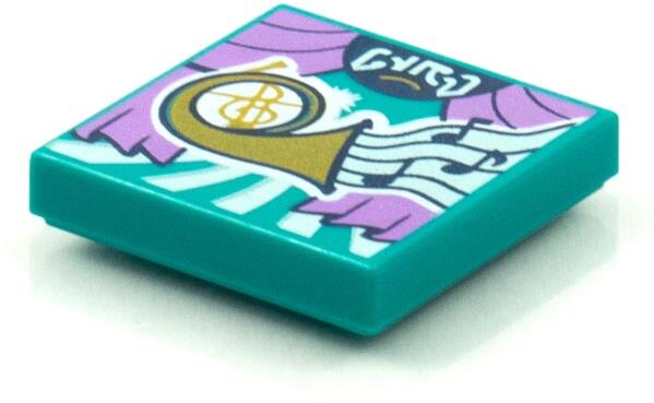 LEGO Alkatrészek 3068bpb1571c39 - LEGO sötét türkiz csempe 2 x 2 méretű, zenélő kürt mintával.