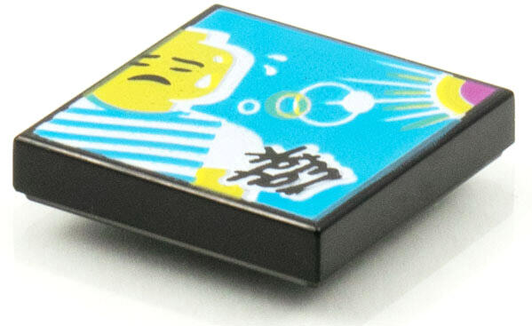 LEGO Alkatrészek 3068bpb1556c11 - LEGO fekete csempe 2 x 2 méretű, napon izzadó minifigura mintával.