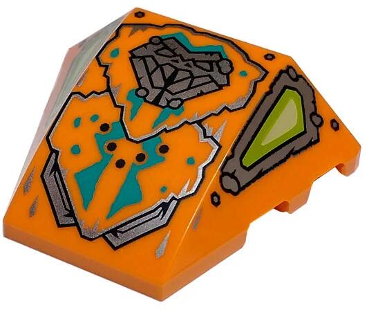 LEGO Alkatrészek 64225pb063c4 - LEGO narancssárga lejtő 4 x 3 méretű, sima, ezüst panel és kígyófej mintával. LEGO Építési útmutató kódszám: 6385348