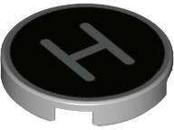 LEGO Alkatrészek 14769pb429c86 - LEGO világosszürke csempe 2 x 2 méretű, fekete háttéren, ezüst H betű mintával. LEGO Építési útmutató kódszám: 6352991