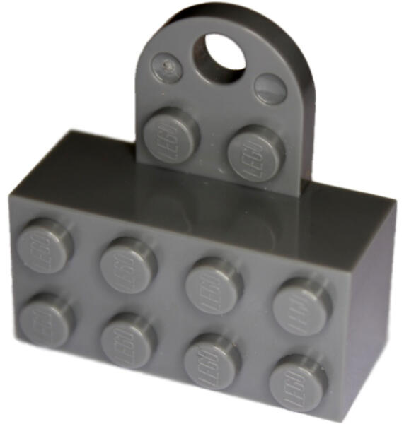 LEGO Alkatrészek - 74188c85 - LEGO sötétszürke mágnes 2 x 4 kocka lyukas füllel.