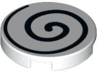 LEGO Alkatrészek 14769pb209c1 - LEGO fehér lap 2 x 2 méretű fekete spirál mintával. LEGO Építési útmutató kódszám: 6215018