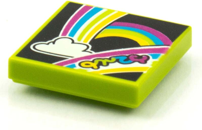 LEGO Alkatrészek 3068bpb1590c34 - LEGO lime csempe 2 x 2 méretű, szivárvány és felhő mintával mintával.