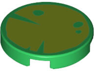 LEGO Alkatrészek 14769pb455c6 - LEGO zöld csempe 2 x 2 méretű, kerek, alján bütyök foglalattal, tavirózsa minátval. LEGO Építési útmutató kódszám: 6360243