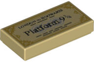 LEGO Alkatrészek 3069bpb0974c2 - LEGO világos krémszínű (tan) csempe 1 x 2 méretű, 9 3/4 vonatjegy mintával. LEGO Építési útmutató kódszám: 6341788