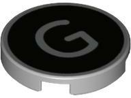 LEGO Alkatrészek 14769pb428c86 - LEGO világosszürke csempe 2 x 2 méretű, fekete háttéren, ezüst G betű mintával. LEGO Építési útmutató kódszám: 6352990