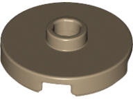 LEGO Alkatrészek 18674c69 - LEGO sötét krémszínű csempe 2 x 2 méretű, kerek, közepén egy bütyökkel. LEGO Építési útmutató kódszám: 6132767