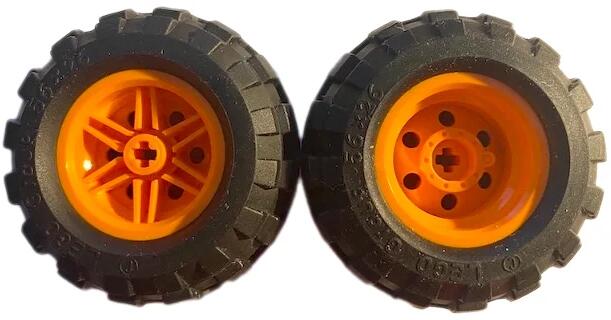 LEGO Alkatrészek 56145c02c4 - LEGO fekete abroncs 56 x 26 méretű 30.4 x 20 méretű narancssárga csillag mintájú felnivel
