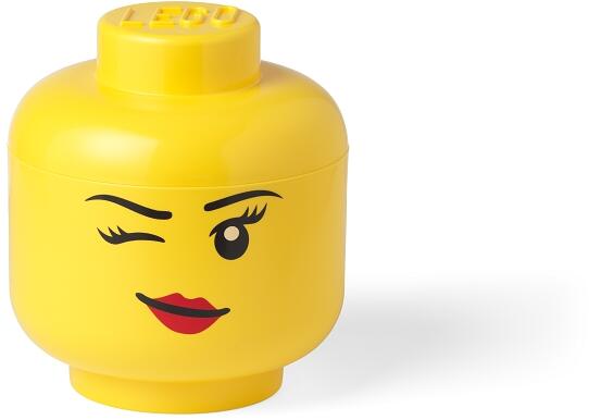 LEGO Kiegészítők 40311727 LEGO Tároló doboz Minifigura fej alakú, sárga kacsintós lány mintával, S-es méretben A LEGO tároló fej egy klasszikus LEGO minifigura fej alakjában amiben azt tárolhatsz ami csak akarsz. Élvezd ennek az ikonikus tárolódoboz látványát házadban akár egy gyerekszobában akár a nappaliban legyen. Méretei: 160 x 160 x 187 mm. Anyagai: polipropilén (PP
