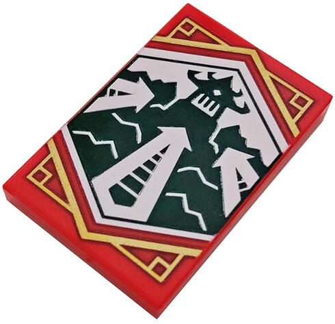 LEGO Alkatrészek 26603pb217c5 - LEGO piros csempe 2 x 3 méretű, dojo templomra mutató nyilak mintával. LEGO Építési útmutató kódszám: 6368487