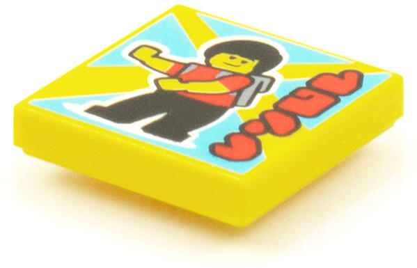 LEGO Alkatrészek 3068bpb1557c3 - LEGO sárga csempe 2 x 2 méretű, hátizsákos táncoló minigiurával. LEGO Építési útmutató kódszám: