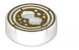 LEGO Alkatrészek 98138pb285c12 - LEGO átlátszó csempe 1 x 1 méretű, kerek, arany homokóra mintával (időnyerő). LEGO Építési útmutató kódszám: 6381996