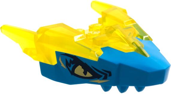 LEGO Alkatrészek 82276pb01c19 - LEGO átlátszó sárga sárkányfej, felső állkapocs, sárga szemekkel, sötét azúr orral. LEGO Építési útmutató kódszám: 6342663