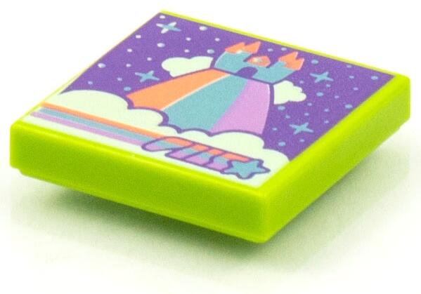 LEGO Alkatrészek 3068bpb1539c34 - LEGO lime csempe 2 x 2 méretű, szivárvány és kastély mintával.