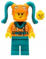 LEGO Minifigurák cty1456 - LEGO Stuntz sofőr minifigura nő narancssárga dzsekiben, bojtos bukósisakban
