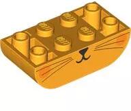 LEGO Alkatrészek 5174pb02c110 - LEGO élénk világos narancssárga lejtő 4 x 2 méretű, íves, inverz, macska száj mintával. LEGO Építési útmutató kódszám: 6466823