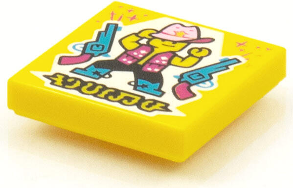 LEGO Alkatrészek 3068bpb1540c3 - LEGO sárga csempe 2 x 2 méretű, cowboy táncos két reovlver mintával. LEGO Építési útmutató kódszám: 6325288