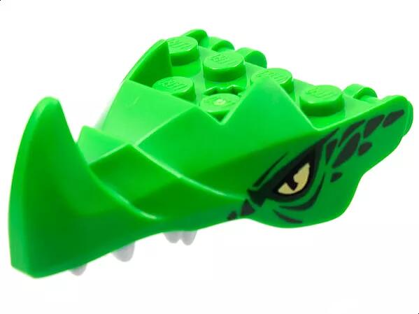 LEGO Alkatrészek 76923pb02c36 - LEGO élénk zöld sárkány fej, 2 fogantyúval, szemek mintával. LEGO Építési útmutató kódszám: 6342662