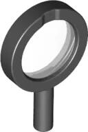 LEGO Alkatrészek 38648c01c11 - LEGO fekete minifigura nagyító vastag kerettel és átlátszó lencsével. LEGO Építési útmutató kódszám: 6325525