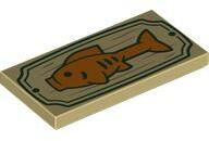 LEGO Alkatrészek 87079pb1146c2 - LEGO világos krémszínű csempe narancssárga hal, sötétzöld keret mintával, 2 x 4 méretű. LEGO Építési útmutató kódszám: 6344345