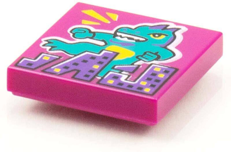LEGO Alkatrészek 3068bpb1550c71 - LEGO magenta csempe 2 x 2 méretű, várost romboló szörny mintával.