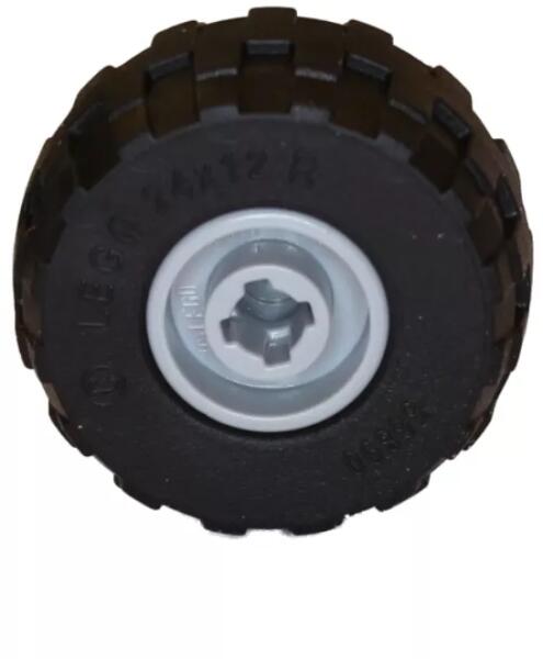 LEGO Alkatrészek 6014bc04c86 - LEGO világosszürke kerék 11mm átm. x 12mm, fekete 24 x 12 R abronccsal.