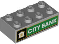 LEGO Alkatrészek - 3001pb149c86 - LEGO világosszürke 2 x 4 kocka, zöld CITY BANK mintával. LEGO Építési útmutató kódszám: 6295451
