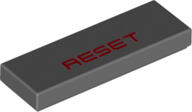 LEGO Alkatrészek 63864pb114c85 - LEGO sötétszürke csempe 1 x 3 méretű, piros RESET felirattal. LEGO Építési útmutató kódszám: 6319326