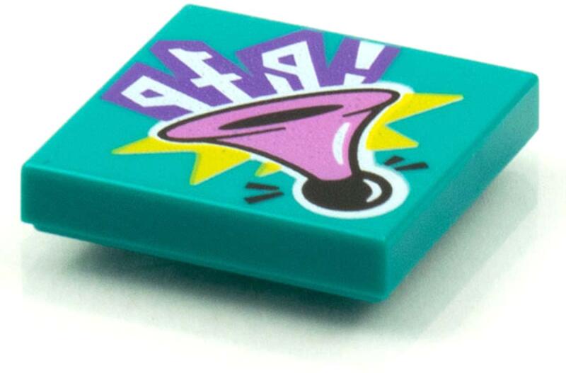 LEGO Alkatrészek 3068bpb1602c39 - LEGO sötét türkiz csempe 2 x 2 méretű, lila izzókürt mintával.