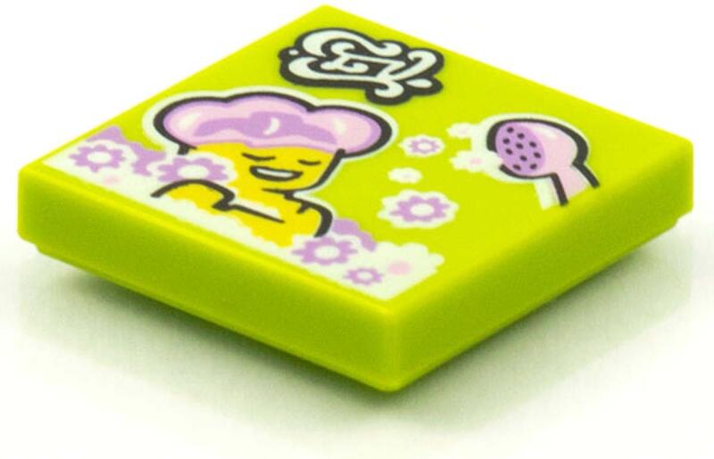 LEGO Alkatrészek 3068bpb1585c34 - LEGO lime csempe 2 x 2 méretű, habfürdőző minifigura hölgy mintával.