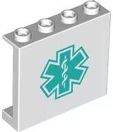 LEGO Alkatrészek 60581pb250c1 - LEGO fehér panel 1 x 4 x 3 méretű, sötét türkiz mentő mintával. LEGO Építési útmutató kódszám: 6461954
