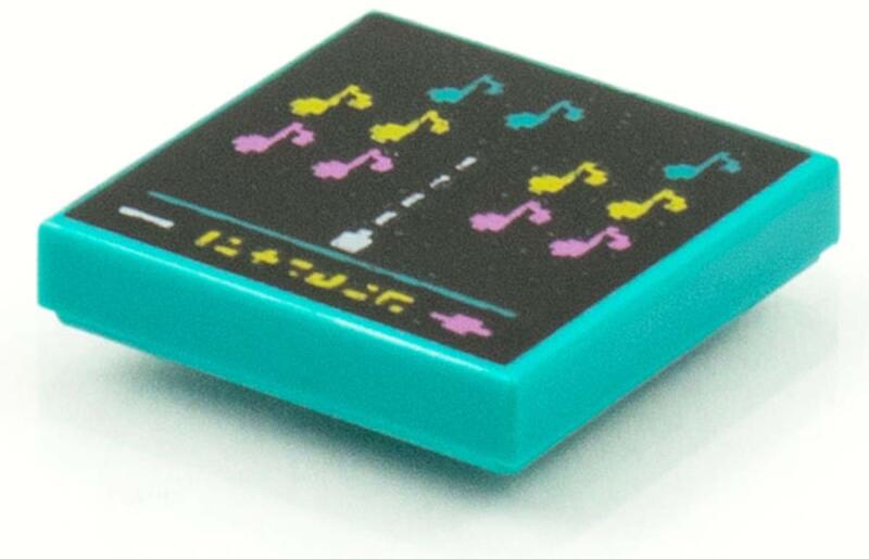 LEGO Alkatrészek 3068bpb1535c39 - LEGO sötét türkiz csempe 2 x 2 méretű, Space Invaders stílusú hangjegy mintával.
