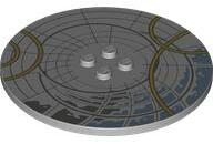 LEGO Alkatrészek 6177pb017c86 - LEGO világosszürke csempe 8 x 8 méretű, kerek, fekte és arany gyűrűk mintával. LEGO Építési útmutató kódszám: 6319745