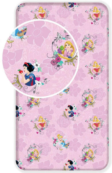 Disney Princess, Hercegnők Rose Gumis Lepedő Mérete: 90x200 cm Anyaga: 100% pamut