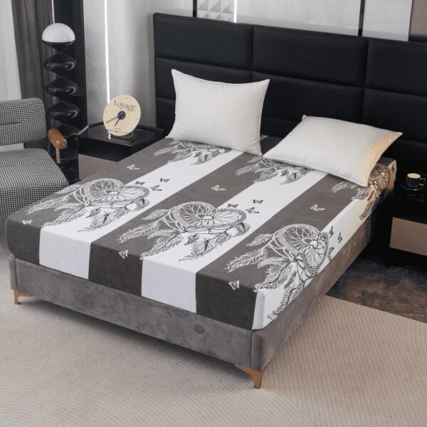 A 90 x 200 cm -es TIRSO mikroplüss lepedő nem csak puhaságával, hanem elegáns szürke-fehér dizájnjával is lenyűgöző , álomfogók motívumával. A mikroplüss anyag különösen népszerű télen, hiszen p ihe-puha tapintású , így extra kényelmet nyújt, kiváló hőtartó képességgel rendelkezik, ami melegen tartja a hideg éjszakákon. Gyorsan szárad , így praktikus a mindenn