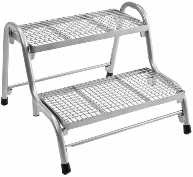 Galvanizált fémből készült univerzális fellépő lakóautókhoz, lakókocsikhoz csúszásmentes lábdugókkal. Rövid idő alatt szét-, illetve összeszerelhető. Méret: 550 x 610 x 180/375 mm Teherbírás: 120 kg