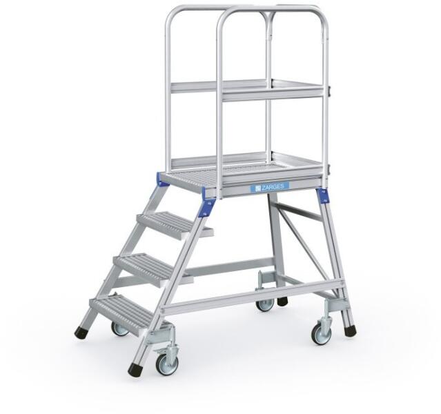 "Mozgatható hozzáférési vagy munkadobogó kényelmes feljutással. Ideális az elhúzódó munkákhoz, szerszámmal is, és akár gyakori helyváltoztatással is. Nagyméretű dobogó korláttal a biztonságos és ergonomikus munkavégzéshez a magasban. Különböző dőlésszögek, 45° a kényelmes feljutáshoz, 60° szűk helyekhez. Választható fokszélesség 600, 800 és 1000 mm. A lép