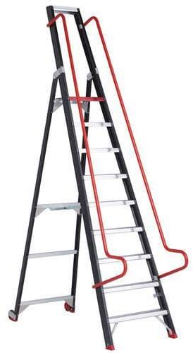 tárolólétra a hátsó rögzített kerekeknek köszönhetően könnyen mozgatható. Önbiztos: a létra mozgás közben nem csukódik össze. Biztonságos össze- és szétszerelés a kétoldali megemelt fogantyúval. A kompakt kialakítás összecsukva megkönnyíti a tárolást.