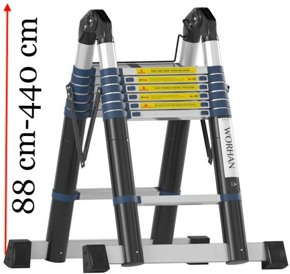 Kiváló minőségű alumíniumötvözetből készült, 1,4 mm vastagságú anyaggal Extra megerősített kapcsolók 2,3 mm vastagsággal Támaszrudak 70 cm hosszúak Lépcsők közötti távolság 28 cm Lépcsők száma: 12 Teljes hosszúság m: Kinyújtva: 3,46 Magasság m: 1,74 Extrák: 4x3, Lépcsők közötti távolság: 28 cm
