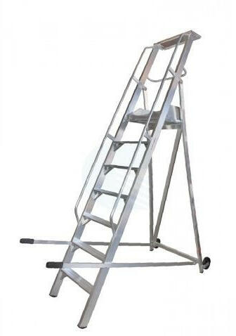 Komissiózó létra Hossza: 1750 mm Összecsukott méret: 850 x 450 x 3100 mm Tálca: 55 x 20 mm-es tárgyakhoz Anyag: alumínium 90 mm csúszásgátlóval ellátott lépcsők Lépcsők hegesztve az állványokhoz a tökéletes tömítés érdekében Nagyméretű munkaállvány: 400 x 430 mm Védő lábazattal a 150 mm magas 3 oldalán Kapaszkodó: 25 mm-es csőátmérővel Fogantyúk: 35 x 25 mm-