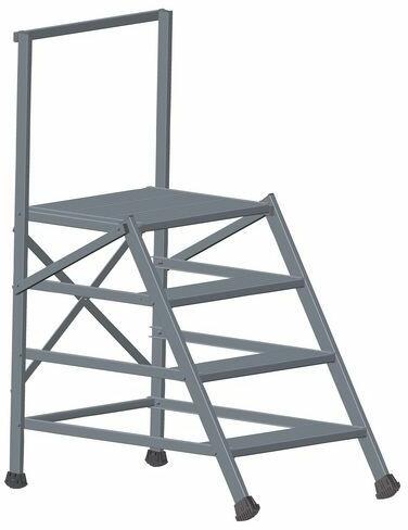 "Mozgatható hozzáférési vagy munkadobogó kényelmes feljutással. Ideális az elhúzódó munkákhoz, szerszámmal is, és akár gyakori helyváltoztatással is. Nagyméretű dobogó korláttal a biztonságos és ergonomikus munkavégzéshez a magasban. Különböző dőlésszögek, 45° a kényelmes feljutáshoz, 60° szűk helyekhez. Választható fokszélesség 600, 800 és 1000 mm. A lép