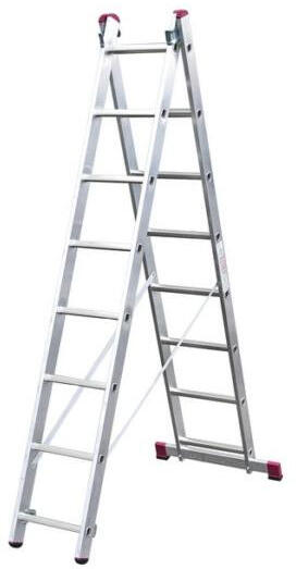 Kétrészes univerzális létra, részenként tizenegy fokkal, alkalmas alkalmi felhasználásra. Használható állólétraként vagy kitolható támasztható létraként. A nagyobb biztonságot a védő feszítő szalagok és a csúszásgátló műanyag talpak biztosítják. A létra egyik oldalának alapja a nagyobb stabilitás érdekében kiszélesített. A létra első foka 17 cm-rel van a pa