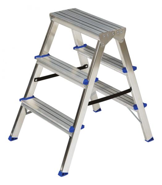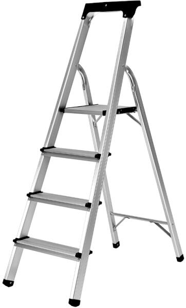 A kiváló minőségű alumíniumnak köszönhetően a háztartási létra masszív, stabil és könnyű. Gyorsan és könnyedén átvihető a következő felhasználási helyre. Ráadásul időjárásálló tulajdonságaival is meggyőző. Az alumínium létrát habozás nélkül kint hagyhatja az esőben. Könnyen tisztítható. A masszív, csúszásmentes felület és a gumírozott lábak bizto