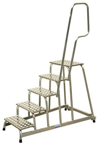 "Mozgatható hozzáférési vagy munkadobogó kényelmes feljutással. Ideális az elhúzódó munkákhoz, szerszámmal is, és akár gyakori helyváltoztatással is. Nagyméretű dobogó korláttal a biztonságos és ergonomikus munkavégzéshez a magasban. Különböző dőlésszögek, 45° a kényelmes feljutáshoz, 60° szűk helyekhez. Választható fokszélesség 600, 800 és 1000 mm. A lép