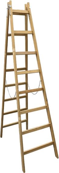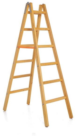 Létra fa 2×6 fokos háztartási (terjedelmes termék!) - összekötő pánt helyet, jelenleg láncos kivitelbe kapható - minden fellépő fok alatt, külőn acélcsavarokkal van rögzítve, a biztonságos használat érdekében 150 kg teherbírásal és CE minősítésel rendelkezik - magasság 190 cm - munkamagasság 280 cm Kód:99026