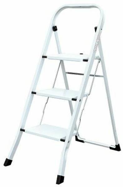 Stabil, összecsukható fellépő alumíniumból; A széles, gumírozott fokok kényelmes és biztos fellépést garantálnak; Helytakarékos tárolás; A stabil merevítő meggátolja a véletlenszerű összecsukódást; magas kapaszkodókeret (60cm)