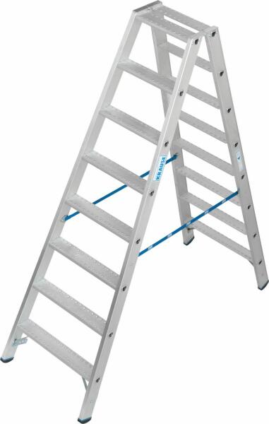 A professzionális munkálatokhoz kifejlesztett, két oldalon járható, lépcsőfokos alumínium létra nagyfokú stabilitást biztosít a mindennapi kemény munka során, különösen csúszós, olajos munkafelületekhez. 80 mm mély, R13 lépcsőfokok lyukacsos felülettel a biztonságos állás érdekében. A profil nem tömődik el szennyeződéssel, sárral, hóval vagy jéggel. Az öntiszt