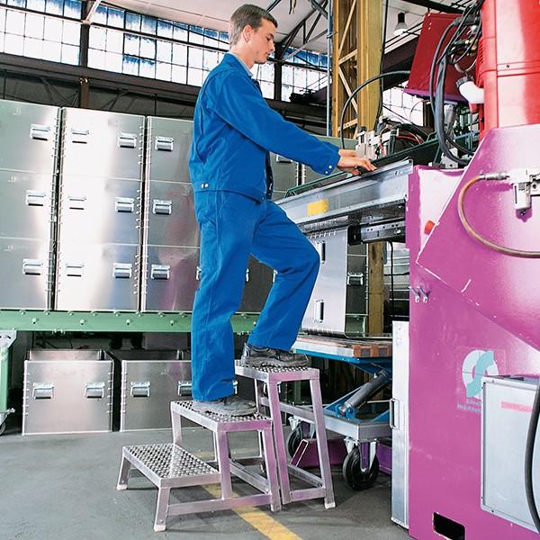 Krause Stabilo alumínium egy oldalon járható lépcsőfokos, gurítható, robusztus, professzionális felhasználásra készült állólétra. Nagyméretű, biztonságos állást garantáló, csúszásgátló dobogóval. Önbeálló, 80 mm-es kerékkel professzionális használatho