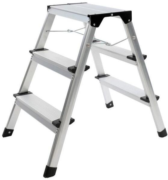 Kompakt acél létra, rendkívül tartós kivitelben. Bármely háztartáshoz használható, amelyben különböző típusú munkákat segít. A fokozott biztonságot csúszásgátló rendszerek, például hullámos lépcsők vagy speciális műanyag lábvégek biztosítják. Az erős és jó minőségű alumínium használata ellenére a létra megőrzi könnyűségét és egyszerű tárolását