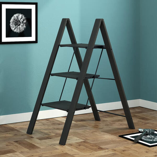 Colombo Leonardo 3 szintes összecsukható fellépő fekete - létra Rendkívül stílusos, könnyű, összecsukható aluminium létra Minden foka egyenlő méretű Nagyon stabil, erős szerkezet, használat közben nem inog Kiválóan alkalmas boltok, galériák, vendéglátóhelyek ügyfélterében való elhelyezésre, ahol nem mindegy a fellépő megjelenése. összecsukott állapotban mindöss